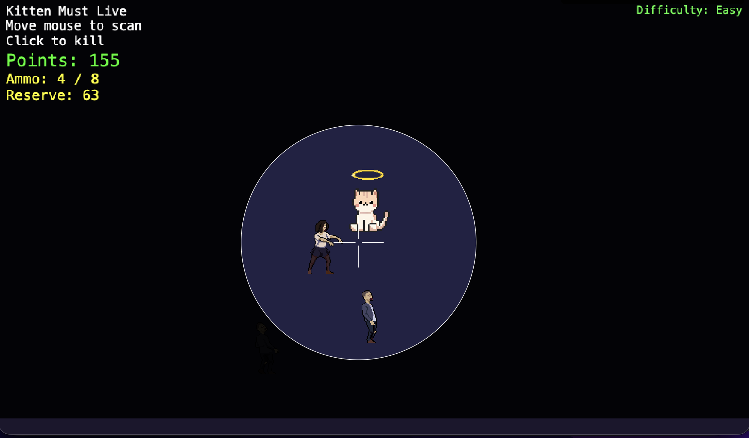 A fast-paced top-down survival shooter where you defend an innocent kitten against relentless waves of zombies.